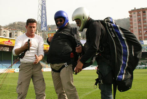 Rize Belediye Başkanı Halil Bakırcı, bir ilki daha gerçekleştirerek yamaç paraşütüyle yanındaki bir eğitmenle Dağbaşın'dan Rize stadyumuna uçuş yaptı.