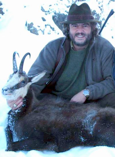 Artvin'in Yusufeli İlçesi'nde İspanyol bir avcı, yasal avcılık kapsamında "şamova" diye adlandırılan çengel boynuzlu dağ keçisi vurdu.