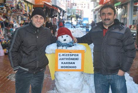 Teknik direktör konusunun netliğe kavuşturulmaması taraftarlarında tepkilerine yol açıyor. Çaykur Rizesporlu taraftarlar yaptıkları kardan adama "Ç.Rizespor teknik direktörü Kardan Morinho" yazarak tepkilerini gösteriyor. Taraftarlar bir an önce takımın istikrara kavuşmasını istiyor.