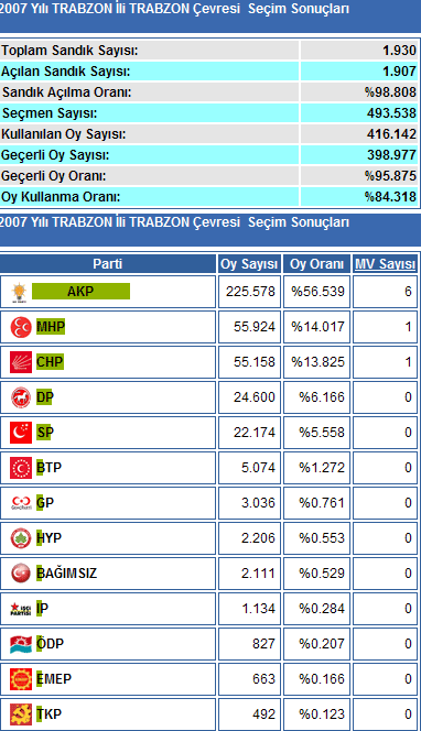 Trabzon'da oyların yüzde 98'i sayıldı ve Ak Parti 6 vekil aldı. Artvin'de ise yüzde 61 sandık açıldı ve durum 1+1 olarak AKP ile CHP arasında gidiyor.