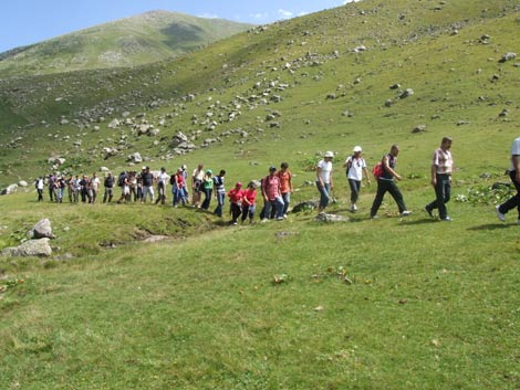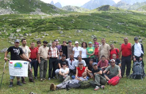 Geziye katılanlar 3 saat devam eden yürüyüşün ardından Kaçkar Zirvesinin eteklerindeki Derebaşı gölüne vardılar.