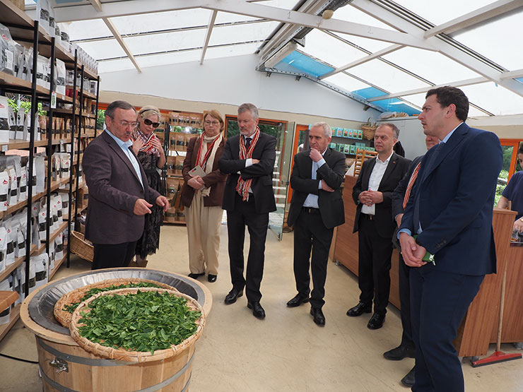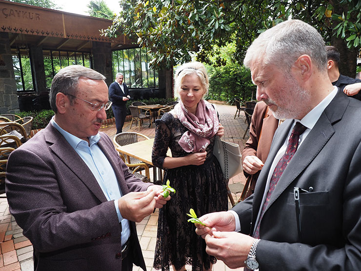 Ziraat Botanik Bahçesini gezen Norveç Büyükelçisi Andreas Gaarder, Finlandiya Büyükelçisi Pirkko Hämäläinen, Danimarka Büyükelçisi Danny Annan, İsveç Büyükelçisi Malena Mård’du Genel Müdür Alim’den Çaykur, Türk Çay Kültürü, çayın tarihi hakkında bilgi aldı.