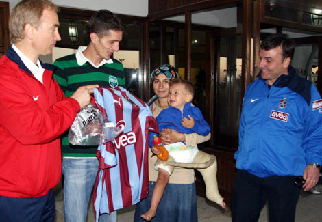 Kalça çıkığı nedeni ile belden aşağısı alçıda olan 2.5 yaşındaki Erhan Kuru, Trabzonsporlu oyuncuları yakından görebilmek için babası ile birlikte saatlerce antrenmanı izledi. Futbolcularla resim çekilmek için bekleyen aile bunda başarılı olamasalar da kafile başkanı Kenan Sönmez, ameliyat olan küçük Erhan Trabzonspor forması hediye ederek gönlünü aldı.