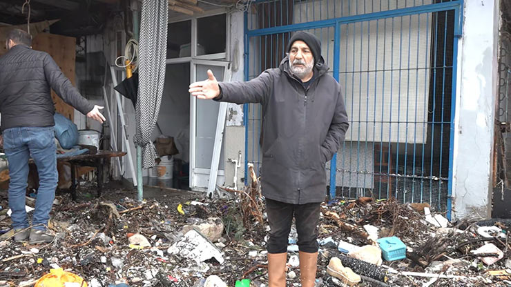 Dalgaların getirdiği malzemeler ve çöpler barınaklara doldu. Balıkçıların günlük hayatında da kullandığı bu barınaklar denizin getirdiği pisliklerle adeta harabeye döndü.