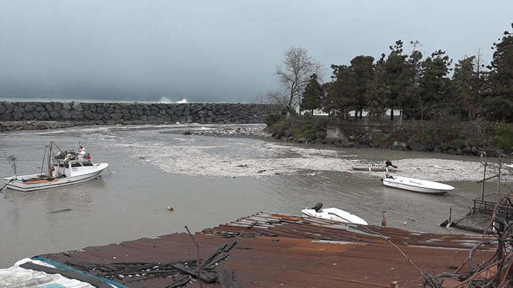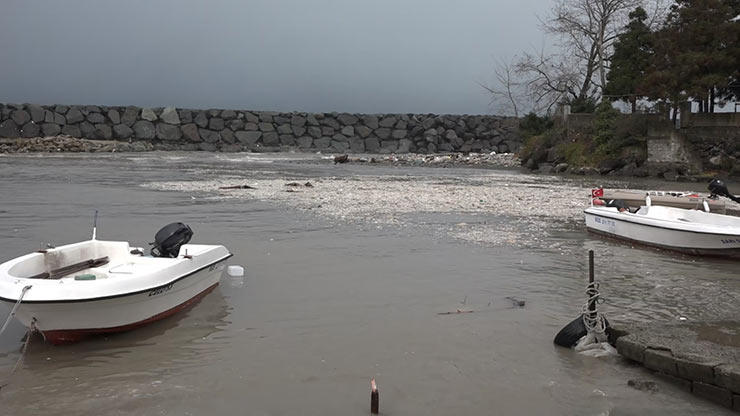 Rize'de fırtınanın oluşturduğu dalgalar, derelerle denize gelen ve kıyıya dökülen çöplerin tekrar karaya vurmasına sebep oldu. Kıyı balıkçıları da bu çöplerden nasibini aldı.