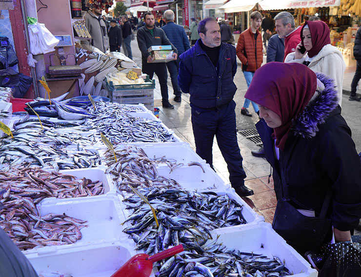 Sezonun oldukça bereketli geçtiğini dile getiren balık satıcısı Onurcan Köse, “Satışlarımız gayet iyi. Balık da bol miktarda çıkıyor. Hamsi 150, mezgit-istavrit 70, barbun 150, somon 200, levrek-çipura 300, zargana 250 ve kalkan balığının kilosu da 700 TL’den satılıyor. Fiyatlar çok uygun, bu aralar mezgit ve istavrit bolluğu var. Normalde istavritin kilosunu 100, mezgiti de 100-150 TL arası satıyorduk. Bolluk dolayasıyla ikisinde de fiyat düştü. Vatandaşlar da fiyattan memnun. Hamsiden sonra en çok mezgit ve istavrit satıyoruz. Bu bolluğun 15 Nisan’a kadar devam edeceğini düşünüyorum. Daha sonrasında av yasağı başlayacak ve 3 ay kafes balıkları tüketilecek” dedi.