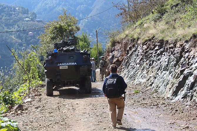 Köylüler, jandarma özel harekat ekipleri ile birlikte arazide terörist arıyor...