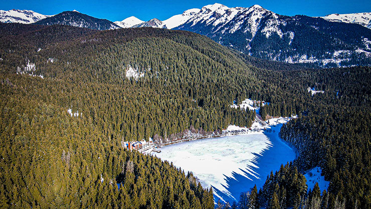 Gökyüzünden görüntüsü ile kalbi andıran Artvin'in Şavşat ilçesindeki Karagöl'ün yüzeyi tamamen buz tuttu