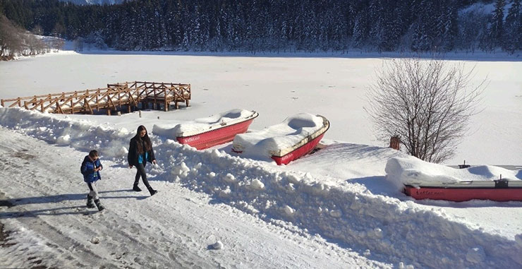 Karagöl'ün yüzeyi tamamen buz tuttu