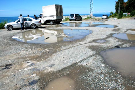 Karadeniz sahil duble yolunun tamamlanmasının ardından eski kara yolunda kalan ve halk plajı olarak kullanılan alanın sık aralıklarla küçük ve derin çukurlarla dolu olduğunu ifade eden sürücüler, bu çukurlara düşmemek için de resmen köşe kapmaca oynadıklarını söylediler.