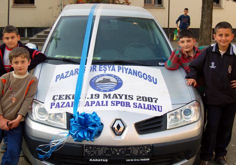 Pazarspor Basın Sözcüsü Erdoğan Pınar, noter huzurunda yapılacak çekilişle Renault Megane, No Frost Buzdolabı, Plazma TV ve DVD kameraların çekilişlerinin de yapılacağını belirterek, “Kaymakamlığımızın tertipleyip kuruluşların desteklediği Pazar 1. Spor Şenliği’nin final gecesinde muhteşem bir program hazırladık. 19 Mayıs Cumartesi akşamı Pazarspor Eşya piyangosu çekilişi noter huzurunda yapılacak. Çekiliş nedeniyle düzenlenen muhteşem müzik şenliğine Hülya Polat ve son yılların popüler topluluğu Grup Kargo katılacak. Kapalı Spor Salonumuzda gerçekleşecek bu konsere eşya piyangosu sahipleri ücretsiz girebileceklerdir. Pazarspor'a katkı sağlayacak geceye katılanlar aynı zamanda süper bir müzik ziyafetiyle de karşılaşacaklar. Ayrıca Pazar 1. Spor Şenliği’nde dereceye girenler de ödüllerini bu şölen esnasında alacaklar.” Diye konuştu.