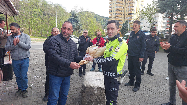 Gelen polislere kooperatif başkanı tarafından çiçek hediye edilirken ekipler kooperatif başkanı ve üyelerine teşekkür etti.