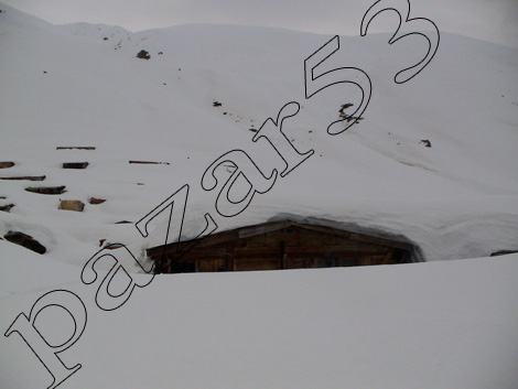 Kar altındaki kavron yaylasında evlerin tamamen kayboldukları gözleniyor...