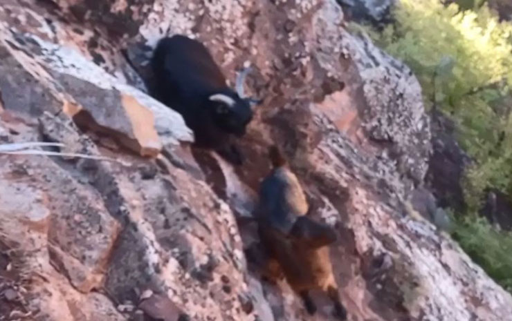 Kayalıklarda mahsur kalan keçiler 3 gün sonra dağcılar tarafından kurtarıldı
