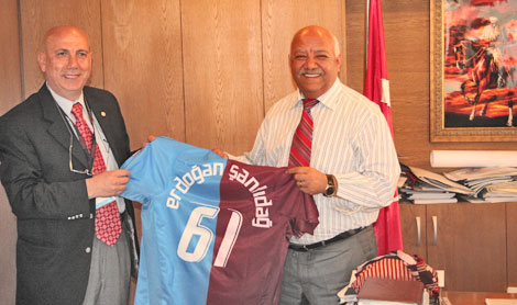 KKTC Ekonomi Turizm Bakanı Erdoğan Şanlıdağ, Trabzon heyetinin Ada'yı ziyaretinde Türkiye'ye hassas mesajlar gönderdi. Bakan ayrıca, kendisine hediye edilen bordo-mavili formayı alırken, Artık Trabzonsporluyum dedi