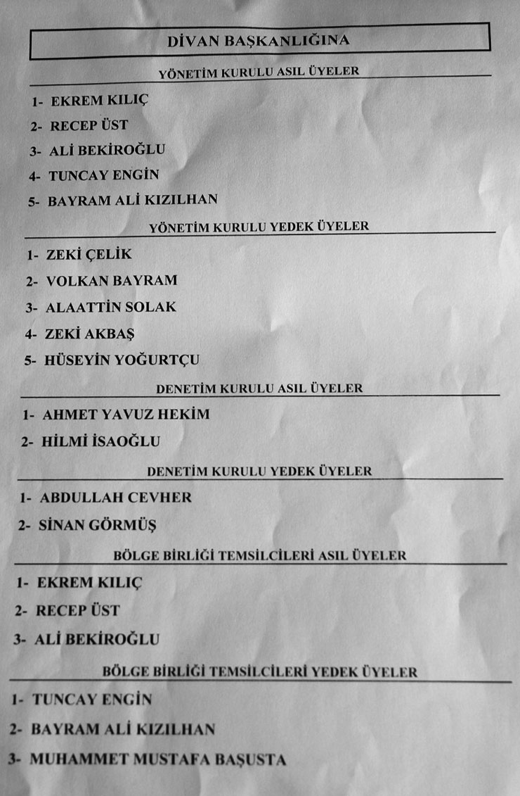 Ekrem Kılıç’ın Başkan, Recep Üst’ün de Başkan vekili olarak yer aldığı Pazar Esnaf Sanatkârlar Kredi ve Kefalet Kooperatifi yönetim kurulu ve diğer organlar şu isimlerden oluştu:
