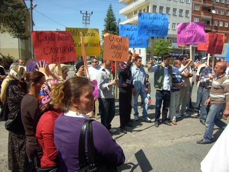 Çaykur'un Ardeşen çay fabrikası önünde toplanan yaklaşık 200 kişilik grup Verdiğiniz 5 kuruş bizi 5 paralık etti , 1 TL 1 Ekmek, 90.5 Kuruş , Çaykur özelleşemez şeklinde pankartlar açıp Çayda sömürüye son, Sadaka değil, zam istiyoruz sloganları attı.