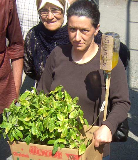 Polisin fabrika girişi kapısında güvenlik önlemi aldığı gösteriye bir kadın ise elindeki kolide bulunan yaş çaya serum bağlayarak katıldı. Çay serumla yaşıyor, çayı ölmeden kurtaralım diyen kadın Başbakan Erdoğan'ın seslerine kulak vermesini istedi.