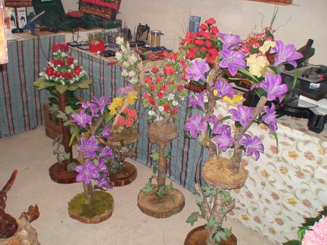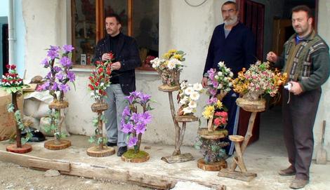 Hemşin'in Kantarlı köyünde 5 bin YTL'ye kurduğu tezgâhta doğadan topladığı kuru dalları dekoratif çiçek haline getiren Nazmi Çelikin ilginç koleksiyonu.