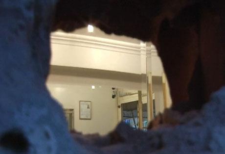 İşte zanlılar bu delikten kuyumcuya baktıklarında karşı duvardaki güvenlik kamerasını gördü. Böylece soygundan vazgeçtikleri sanılıyor.