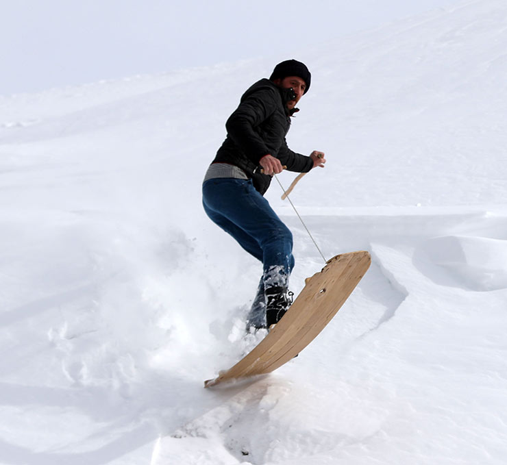 Mehmet Kurt ise 60 yaşında olduğunu, 5 yaşından itibaren bölgede yaşadığını ve tahtayla kaydığını anlattı.