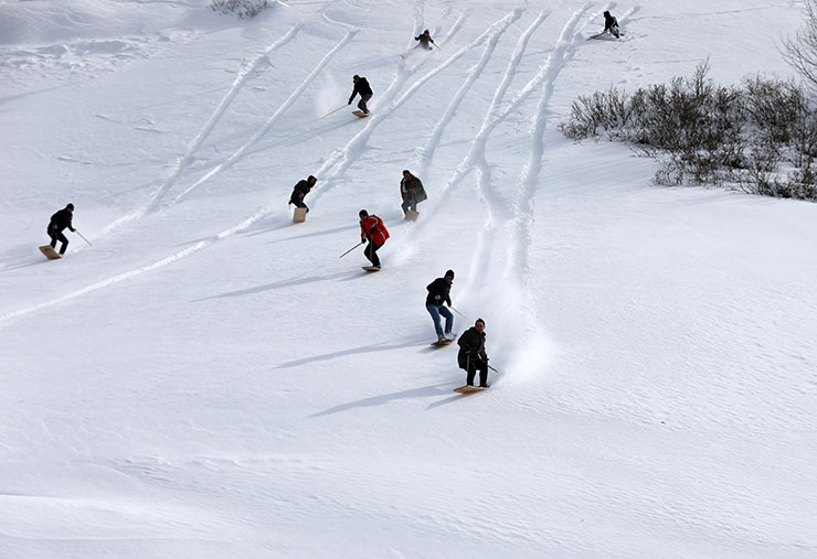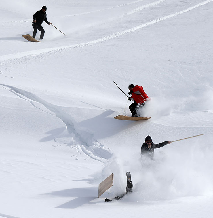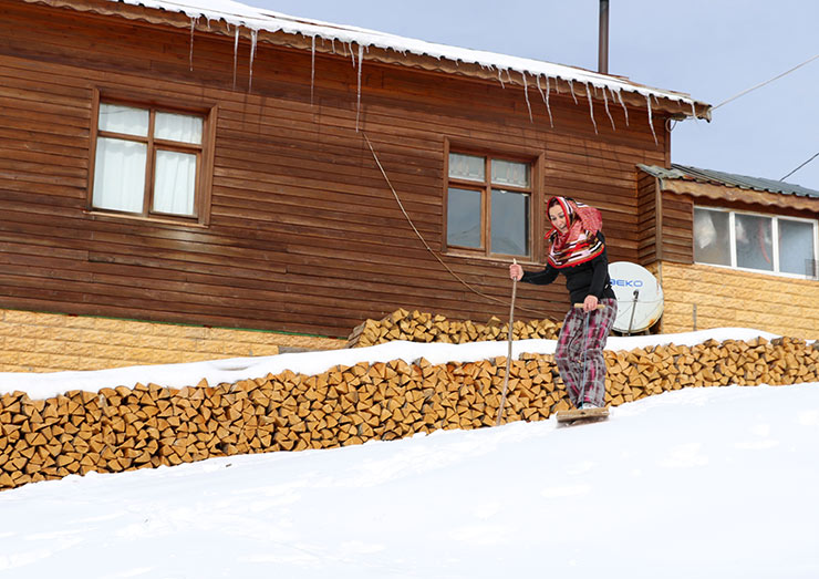 Köy halkı, çam ağacından elde edilen tahtaların birleştirilmesiyle 30 santimetre genişliğinde, 160-190 santimetre uzunluğunda yapılan üzme tahtalarıyla kar üstünde kayarak gidecekleri yere ulaşıyordu.