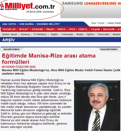 Milliyet, Rize İl Milli Eğitim Müdürü Rasim Çelik'in Manisa'ya atanmasıyla ilgili konuyu bakın nasıl gündeme taşıdı.: