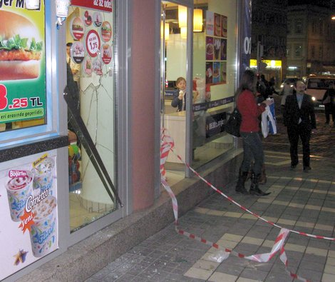 Trabzonda bugün akşam saatlerinde kimliği belirsiz bir kişi tarafından Mc Donaldsa atılan taş sonucu restoranın camı kırıldı.