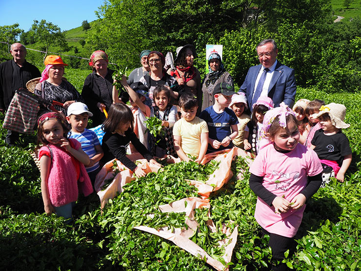 Minikler çay hasadı yaptı