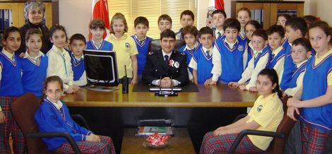 Polis haftası kapsamında düzenlenen etkinlikler devam ediyor. Rize’de bugün Özel Bilge İlköğretim Okulu öğrencileri Güneysu İlçe Emniyet Amirliğini ziyaret ettiler. İlçe Emniyet Amiri Ömer Köse’nin makam koltuğuna da oturan minikler telsizden anons yapmayı öğrendiler. İlçe Emniyet Amiri Köse’ye nasıl polis olunacağını soran öğrencilerin ilgi ve sevgisi dikkatlerden kaçmadı.
