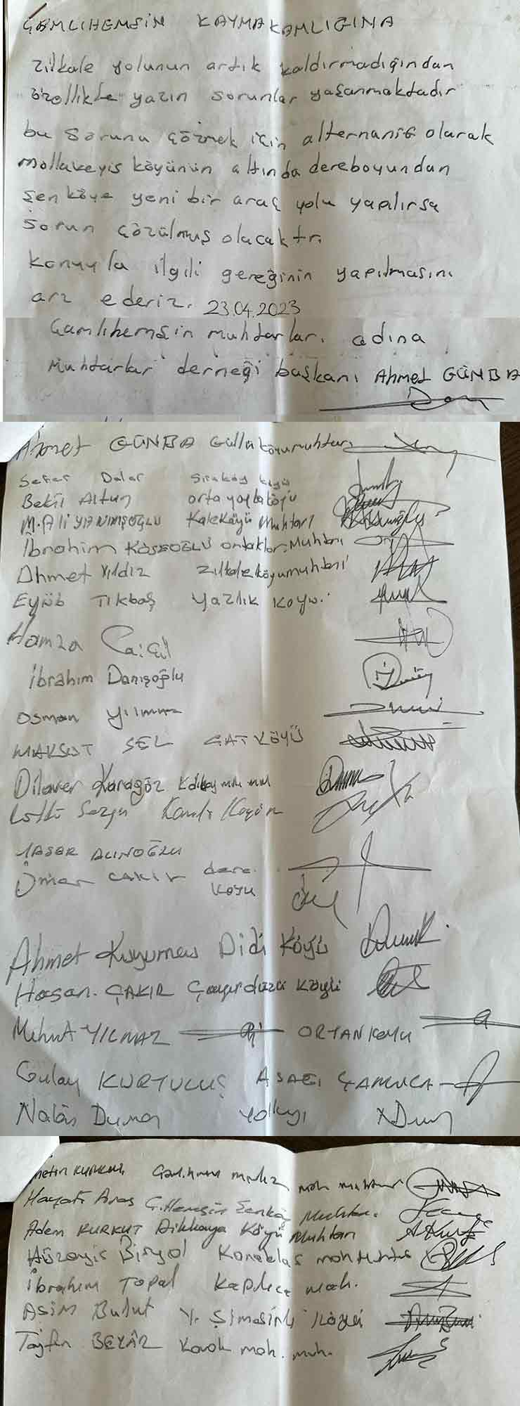Konuyla ilgili Çamlıhemşin Kaymakamlığı ve CİMER üzerinden Tarım ve Orman Bakanlığı Kaçkar Dağları Milli Parklar Müdürlüğü’ne de dilekçelerini ulaştıran muhtarlar, “Zilkale yolunun yaşanan yoğun trafiği kaldırmadığından, özellikle yaz aylarında sorunlar yaşanmaktadır. Bu sıkıntıları çözmek için alternatif olarak Mollaveyis köyünün altında dere boyundan Şenköy’e yeni bir araç yolu yapılırsa sıkıntı çözülmüş olacak.” ifadeleriyle başvurularını gerçekleştirdi.