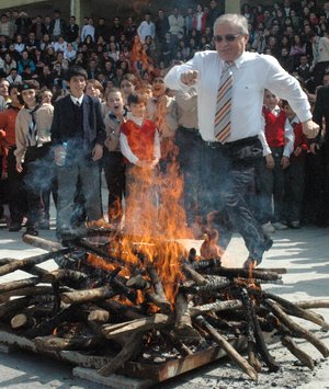 Rize'de nevruz dolayısıyla bir takım etkinlikler düzenlenirken Vali Kasım Esen ateş yakıp çekiçle örs üzerinde demir dövdü.