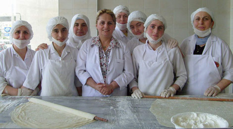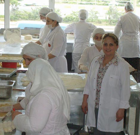 yapıyoruz. Bunların yanında tuzlu türlerimiz de var. İlk zamanlar sadece su böreği ve pazılı börek yapıyorduk ama şimdi ev poğaçası, ev mantısı, zeytinyağlı dolma, kıymalı kol böreği, peynirli korasan, irem poğaçası ve daha birçok çeşit tatlı türü ve kuru pasta imal ediyoruz. Özellikle burada yaptığım Laz böreklerinin ünü Başbakan'a kadar gitti. Hatta Cumhurbaşkanı ve diğer bakanlar bile yaptığımız Laz böreklerinin ününü duydu. Başbakan Trabzon'a veya Karadeniz'e geldiğinde bizim Laz böreğimizden almadan