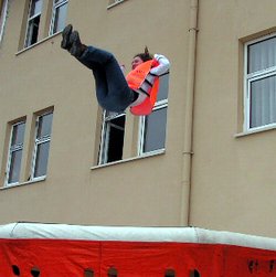 Mustafa BAYRAK - Rize'de Sivil Savunma Haftası dolayısıyla okullarda gerçekleştirilen tatbikatlar devam ediyor. Son olarak Fen Lisesi'nde bir tatbikat yapıldı. 2 bin öğrencisi olan okul 1 dakika 25 saniye içerisinde boşaltılırken, tatbikat gereği sınıflarda kalan öğrenciler, okulun 2. katından Rize Belediyesi İtfaiyesi tarafından açılan hava yastığına atladı. Atlamalar sırasında öğrenciler heyecanlı anlar yaşadı. Daha sonra sınıfta kalan yaralı bir öğrenci Kaçkar Dağcılık ve Rafting Spor Kulübü'ne (KDRK) bağlı bir dağcı tarafından sırtında binadan indirildi. Tatbikatta son olarak okul bahçesinde çıkan yangın itfaiye erleri ve öğrenciler tarafından söndürüldü.