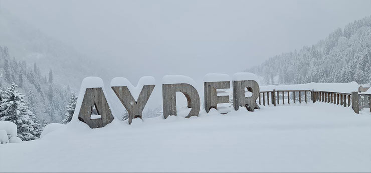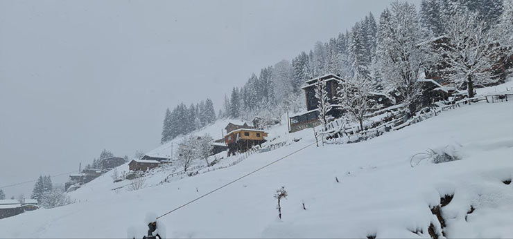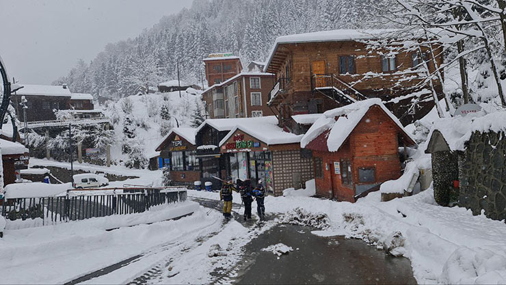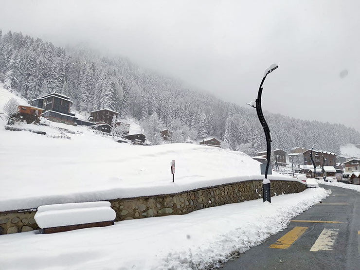Çamlıhemşin ilçesine bağlı ünlü turizm merkezi Ayder Yaylası da karla beyaza büründü.