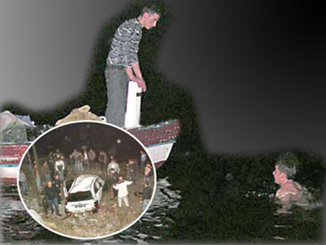 Otomobil denize yuvarlandı