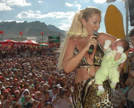 Sayan, bir ara kucağına verilen 2 aylık bir bebekle birlikte şarkısını tamamladı. Sayan şarkısı bittikten sonra minik bebeği severek kucağında salladı.