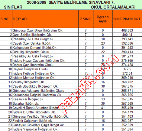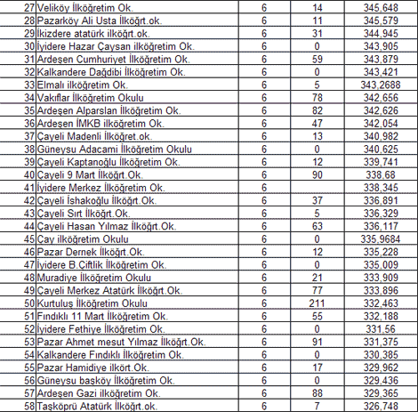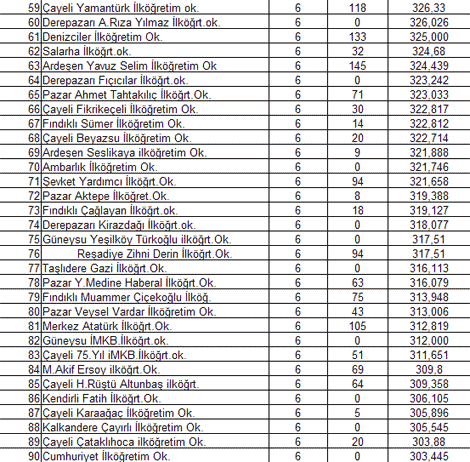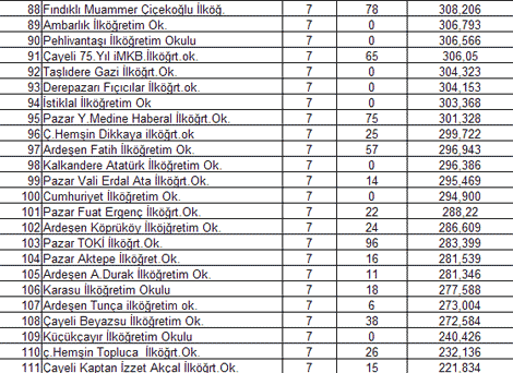 İşte Seviye Belirleme Sınavlarında Rize'deki tüm okulların başarı sıralamaları :