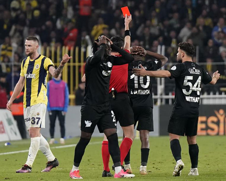 Rizespor olarak büyük emek verdiklerini aktaran Er, "Bu akşam Fenerbahçe stadında 40 dakika futbol izledik, sonrasında ise yönetmeni malum kişi olan bir tiyatro izledik. Çok üzgünüz. Gençlerimiz sahada canıyla, dişiyle mücadele vermiştir ama neticede ciddi bir emek hırsızlığıyla karşı karşıyayız. Türk futbolunda bunların olması bizleri gerçekten çok üzüyor. Fenerbahçe böyle bir galibiyet neticesinde nasıl seviniyor onu anlamakta da zorlanıyorum. Gerçekten buna ihtiyacı yok. Türk futbolu böyle bir yere varamaz. Biz neredeyse 6 sezondur bu tip sıkıntılarla karşılaşıyoruz ama Türk futbolu zarar görmesin diye hiçbir zaman çok kötü açıklamalar yapmadık. Çok nadir açıklamalar olsa da artık bizim de bir şeyler söylememiz lazım diye düşünüyoruz. Gerçekten kınıyoruz, sahada bize yapılanları reddediyoruz. Sarı kartlarla başlayan psikolojik baskı netice vermeyince kırmızı kartlara dönüştü ve neticesinde de Rizespor'un burada puanı gasp edildi. Yani her şey gözümüzün önünde cereyan ediyor. Sahada oyuncu değişikliği yapmak üzere harekete geçen Rizespor oyuncusu önce sarı kartla sonra kırmızı kartla dışarı atılıyor. Biz Ghezzal ile bu konuyu konuştuk, asla ağzından kötü bir laf çıkmamış" ifadelerini kullandı.