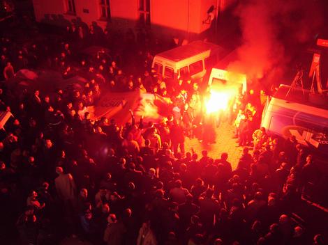 AK Parti Pazar İlçe Binası önünde toplanan partili kalabalık sonuçların gelmesiyle havai fişek gösterileri başlattı.