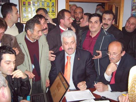 Dr. Ahmet Basa'nın pazar Beleiye Başkanlığı'nı kazandığını öğrenen partililer ilçe binası önünde tulum ve horon eşliğinde havai fişekler atarak coşkulu kutlamalar yaptı.