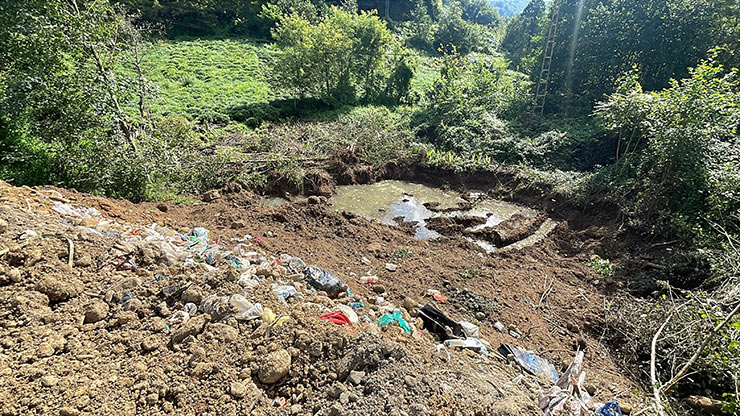 Pazar Belediyesi ekipleri, çöpleri ilçeye bağlı Soğuksu Mahallesi'nde derenin kenarına dökerek üstünü toprakla kapattı. Bunun üzerine mahalle halkı mağduriyetlerini dile getirerek ihbarda bulundu.