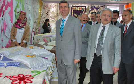 Sergide yıl boyunca bayan kursiyerler tarafından yapılan giyim, nakış, el sanatları, trikotaj ve kilim ürünleri sergileniyor.