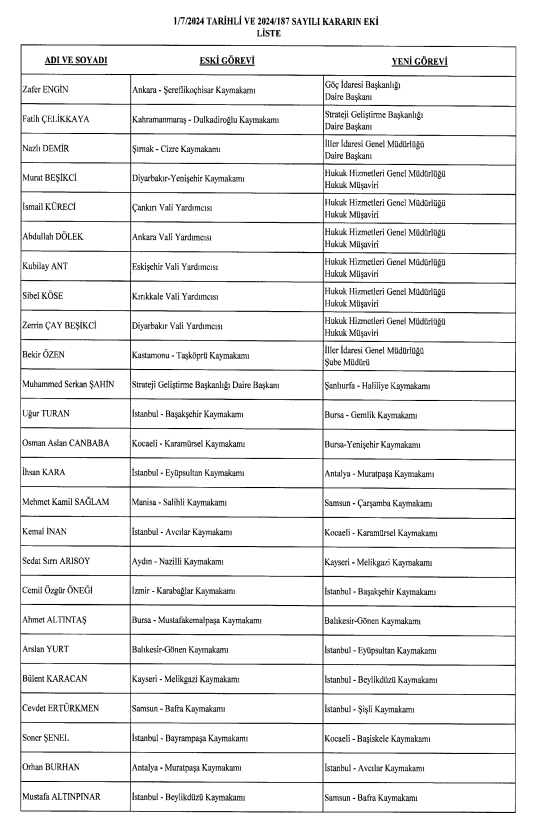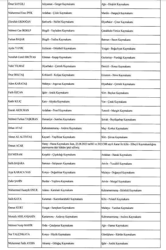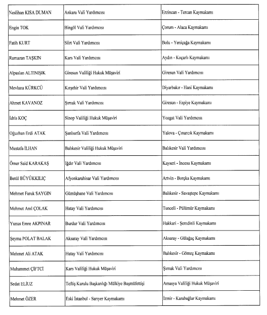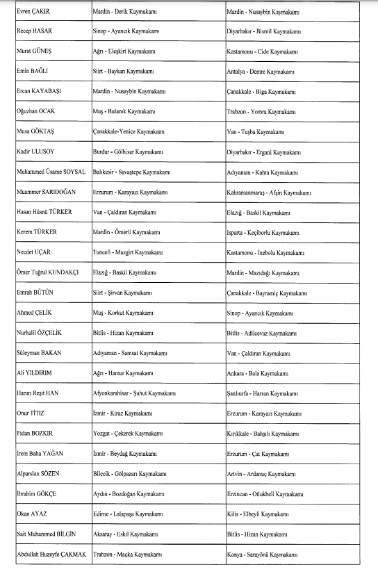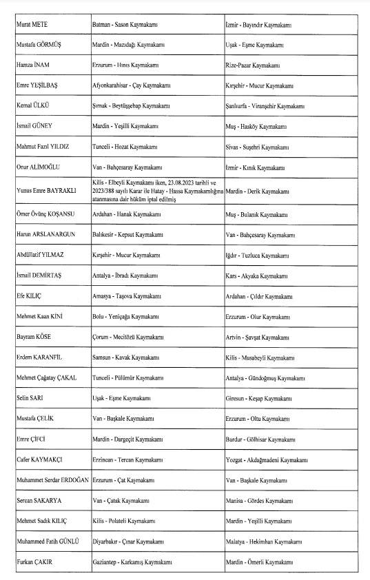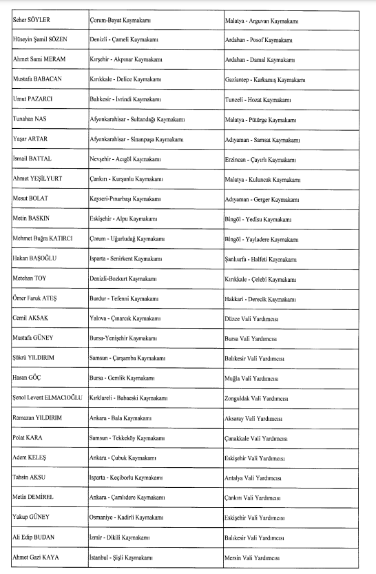 Pazar ilçe Kaymakamlığına Erzurum'un Hınıs Kaymakamı Hamza İnam atandı. Pazar Kaymakamı Mustafa Akın ise Hakkari Yüksekova Kaymakamı oldu.
