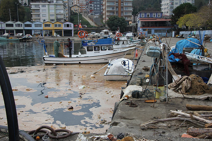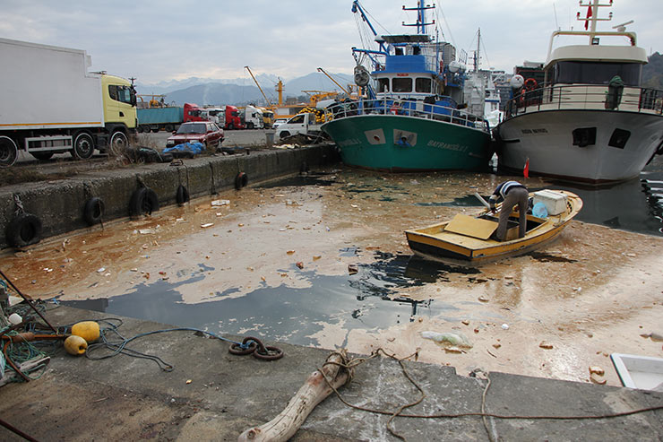 Pazar Kirazlık Limanı, denize boşaltılan balık yağı ve atılan pisliklerle adeta çöplüğe döndü.