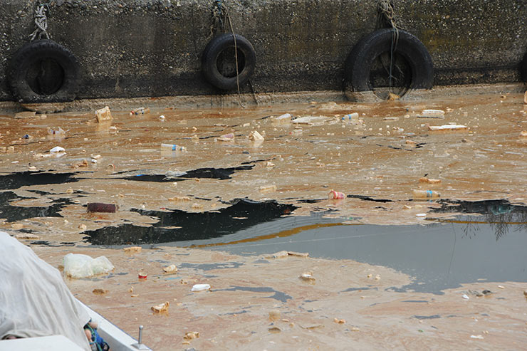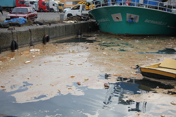 Limanda suyun üstünü kaplayan yağ tabakası ile çok sayıda atık madde çirkin bir görüntü ortaya koyarken vatandaşlar tepki gösterdi.