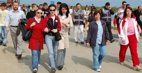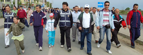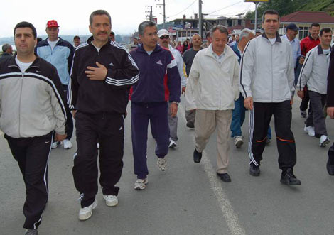 İlçe Gençlik ve Spor Müdürlüğünce düzenlenen yürüyüş için Kaymakam Cemil Kılınç, Belediye Başkanı Mümtaz Sinan, Başkan Yardımcısı Avni Kahya, ilçe Emniyet Müdürü Şener Ateşli, Gençlik ve Spor Müdür Vekili Rauf Oğuz, daire amirleri, sivil toplum örgütlerinin temsilcileri ile vatandaşlar Hükümet Meydanı'nda toplandı.