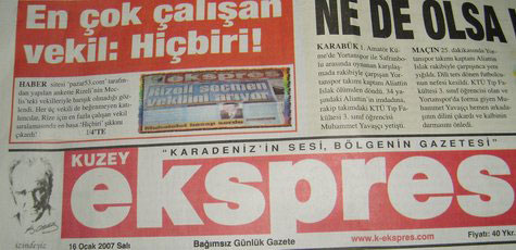 Pazar53, kaliteli ve ciddi yayıncılık anlayışıyla yöresel habercilikte ses getirmeye devam ediyor. Ulusal kanalların bölge haberlerinde bir çok kez kaynak gösterdiği pazar53, bölgedeki basın yayın kuruluşlarının da referansı olmaya devam ediyor. Trabzon basının önde gelen yayın kuruluşu Ekspres Gazetesi bugünkü sayısında Pazar53 web sitesinin Rize Milletvekilleri ile ilgili anketini 1. sayfadan haber yaptı. Sitemizdeki “Rize Milletvekillerinin hangisi en çok çalışıyor?” başlıklı anket ve sonuçları üzerinde yorum yapan gazete, “Bölgenin önde gelen haber sitesi pazar53.com tarafından yapılan ankette Rizelinin Meclis’teki vekilleriyle barışık olmadığı gözlendi. Her 3 vekili de beğenmeyen katılımcılar Rize için en fazla çalışan Vekil sıralamasında en başa hiçbiri şıkkını çıkardı! 2 binden fazla kişinin oy kullandığı site anketinde A.Kadir Kart’a yüzde 16.14, İmdat Sütlüoğlu’na yüzde 7.59, İlyas Çakır’a da yüzde 14.08’lik oy çıktı. Hiçbiri şıkkı ise yüzde 62.19 oldu” şeklinde haberi verdi.
