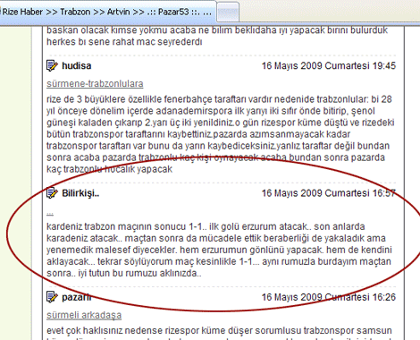 Hafta içinde en çok konuşulan konu Trabzon Karadeniz-Erzurum maçıydı. Karşılaşma öncesi, her ne kadar Trabzon Karadeniz takımının bariz gücü ve Erzurumspor'un kör topal hali, maçın skorunu önceden açıkça belli etse de kafalardaki soru işaretleri hiç eksilmedi. Genel kanı Trabzon Karadeniz'in bu maçı istediği taktirde açık farkla kazanabileceği yönündeydi. Hafta içi yapılan haberlere yazılan makalelere ise okurlar değişik yorumlar yapıyor, fikirlerini yazıyorlardı.