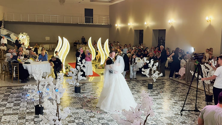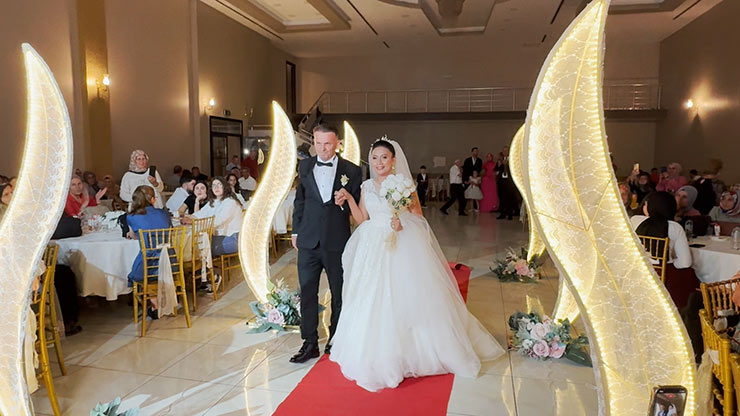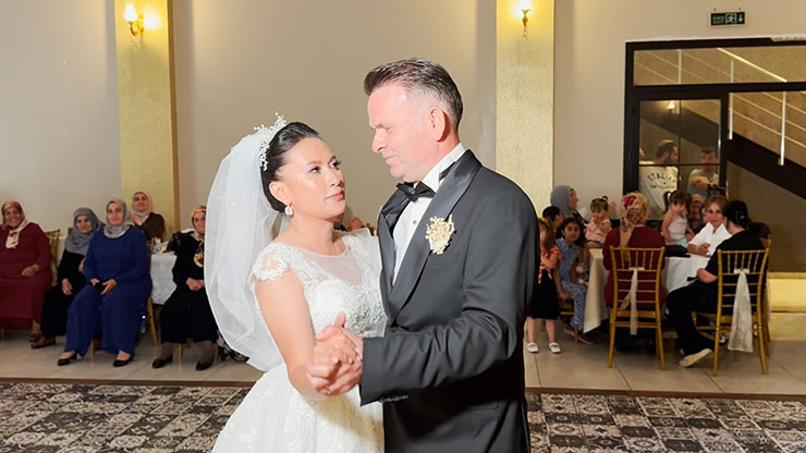 Kendisinin eşine şaka amaçlı ‘Benimle evlenir misin?' dediğini ve sürecin Endonezya'da nikah Türkiye'de düğüne kadar geldiğini dile getiren damat Faruk Tibukoğlu, "Eşim Endonezya Cakarta'dan. Geçen Ramazan Bayramı'nda tatile gitmiştim ve orada kaldığım apartta rezervasyon yaptırmıştım. Orayı işleten eşim oradaydı. Şakasına ‘Ben evlenmek istiyorum, sen evli misin?' falan dedim. ‘Yok bekarım' dedi şakasına ‘Peki benimle evlenir misin?' dedim o da ciddiye aldı ve ilişkimiz öyle devam etti. Yaklaşık bir hafta için de orada işlemleri yaptık, ondan sonra da nikah için gün aldık. Endonezya'da Mayıs'ın 9'unda evlendik. Eşim burayı çok beğendi yemekler olsun her şeyi beğendi. Ben oraya gittiğimde çok zorlandım yemek yiyemedim ekmekleri yok mesela çoğu zaman aç kaldım. Kahvaltı kültürü yok ama kendisi burada bizden daha çok benimsedi. Düğünümüz bu gece, biz orada nikahlanmıştık zaten. Burada da düğün yapalım dedik. Bugün de bu mutluluğumuzda sizlerle beraberiz. Şimdilik burada kalacağız İzmir'de yaşarız herhalde, düşüncemiz o. Türkiye'de kalacağız" dedi.